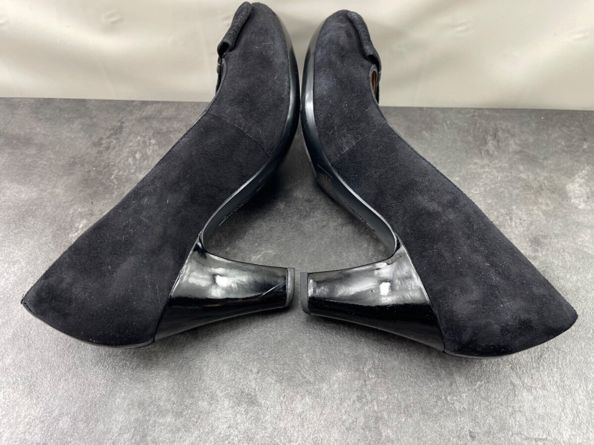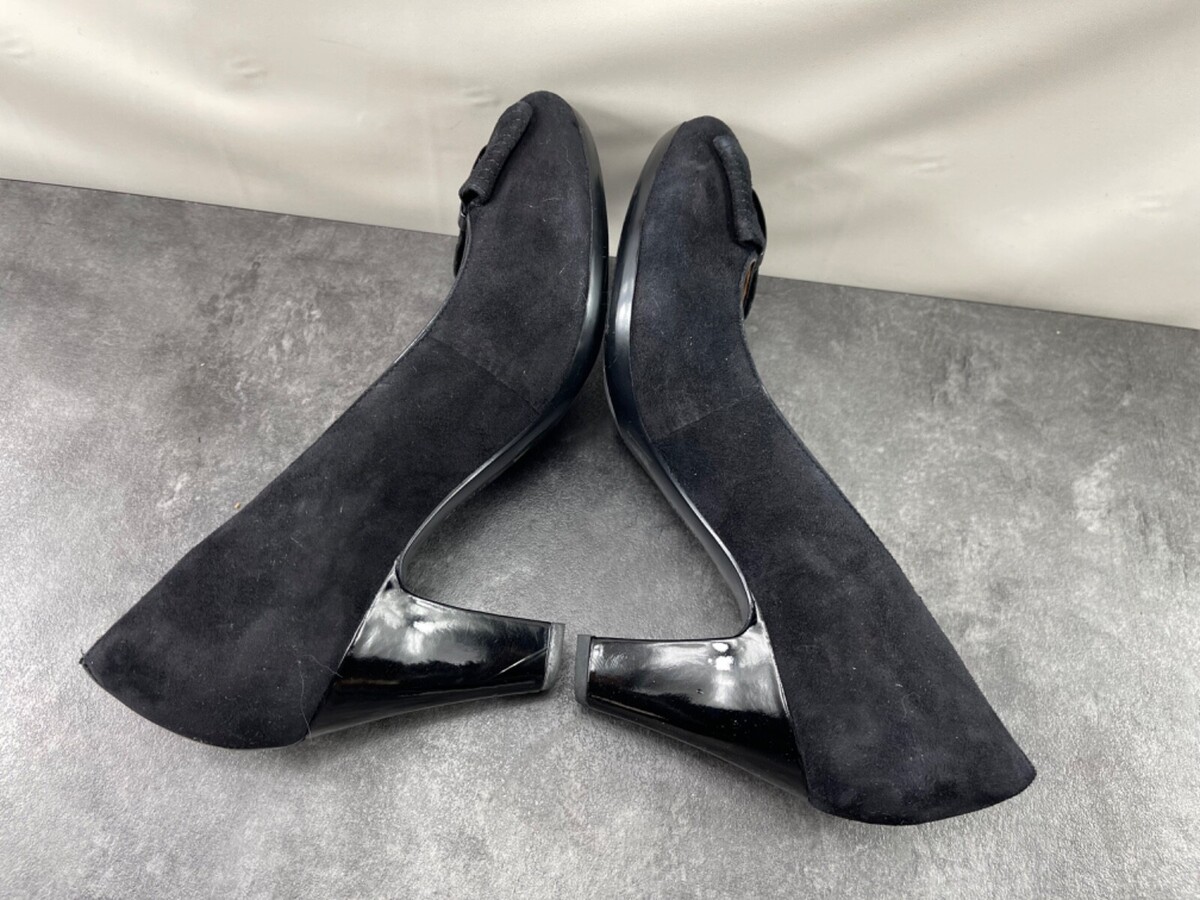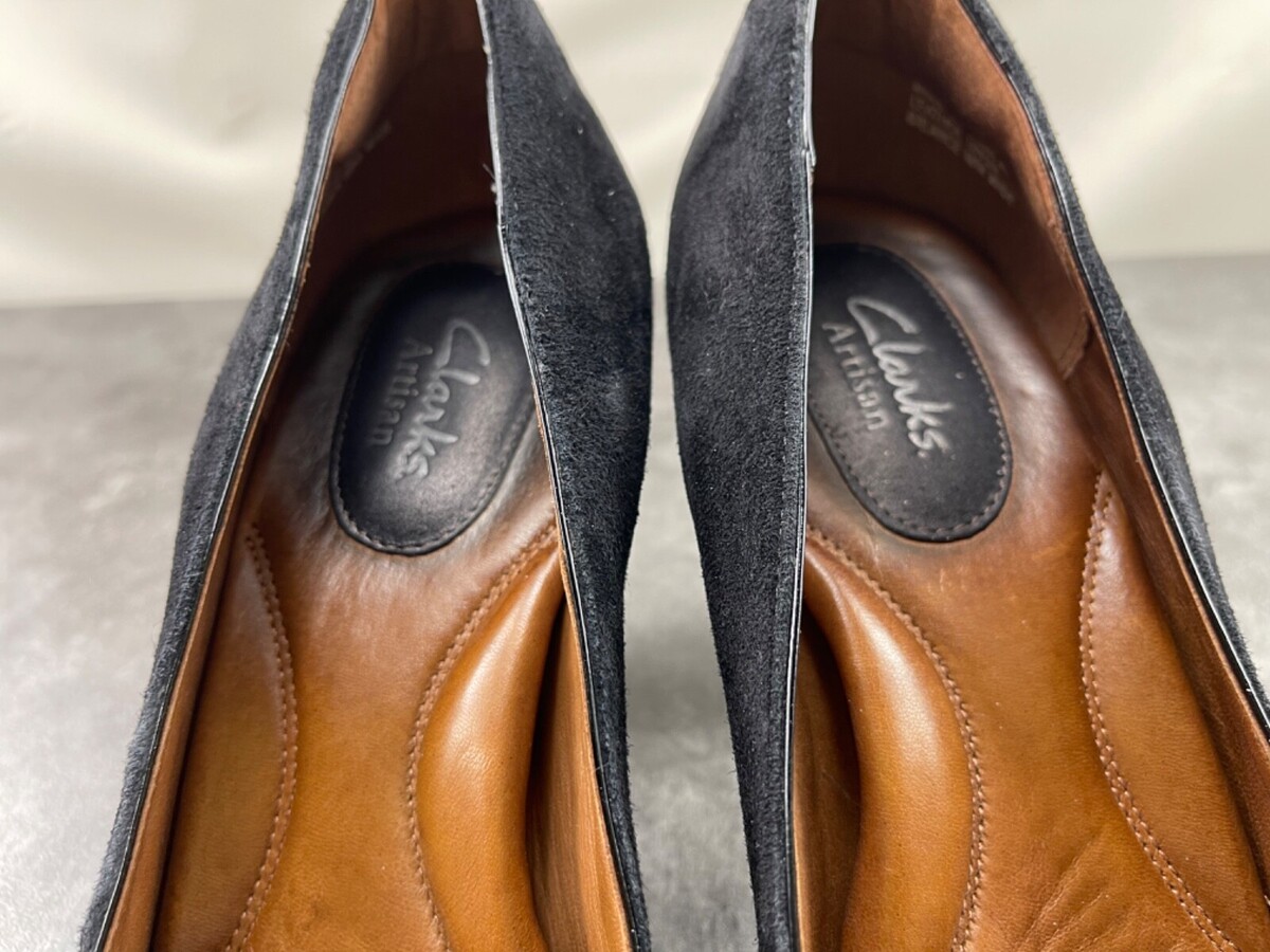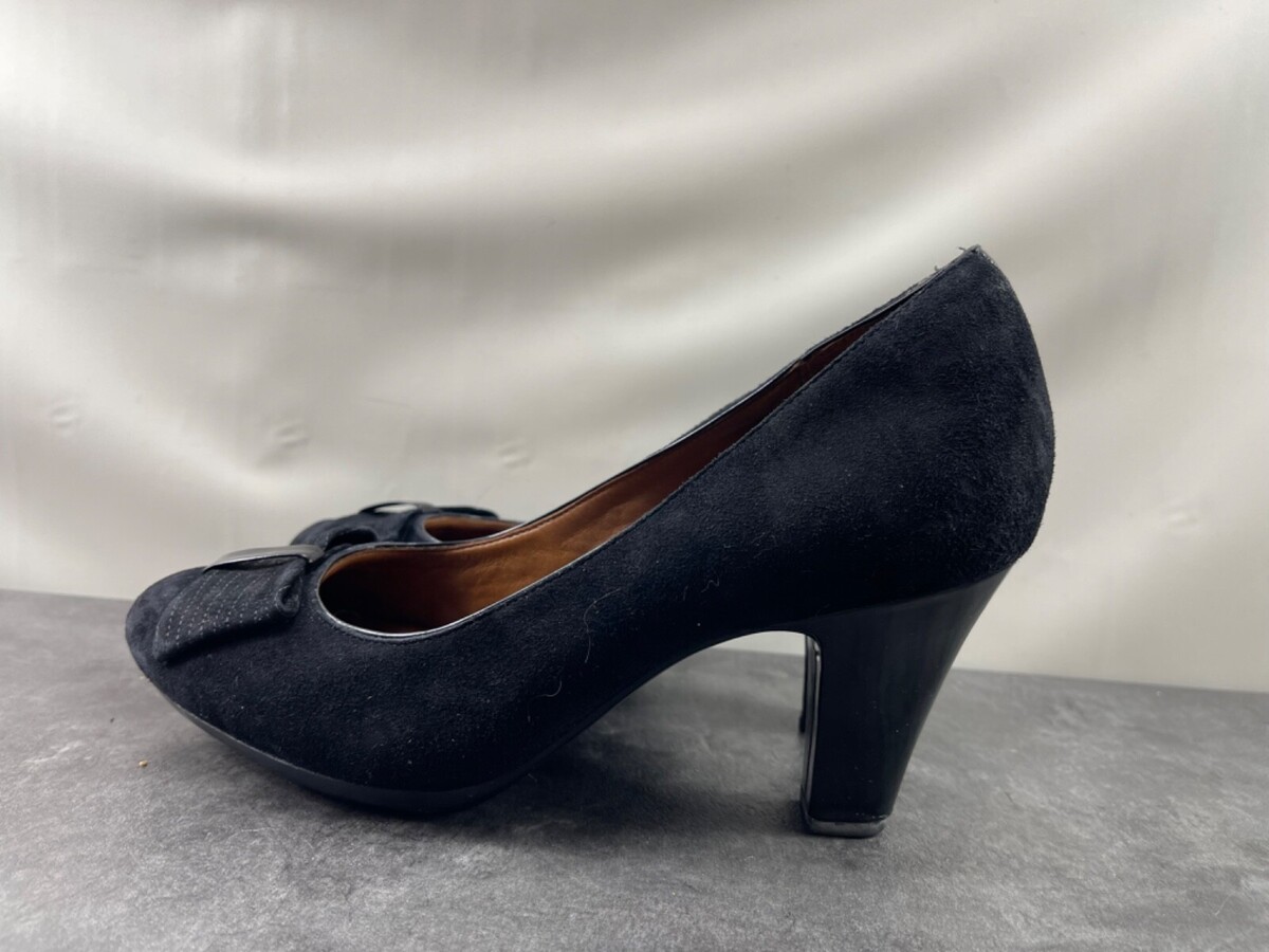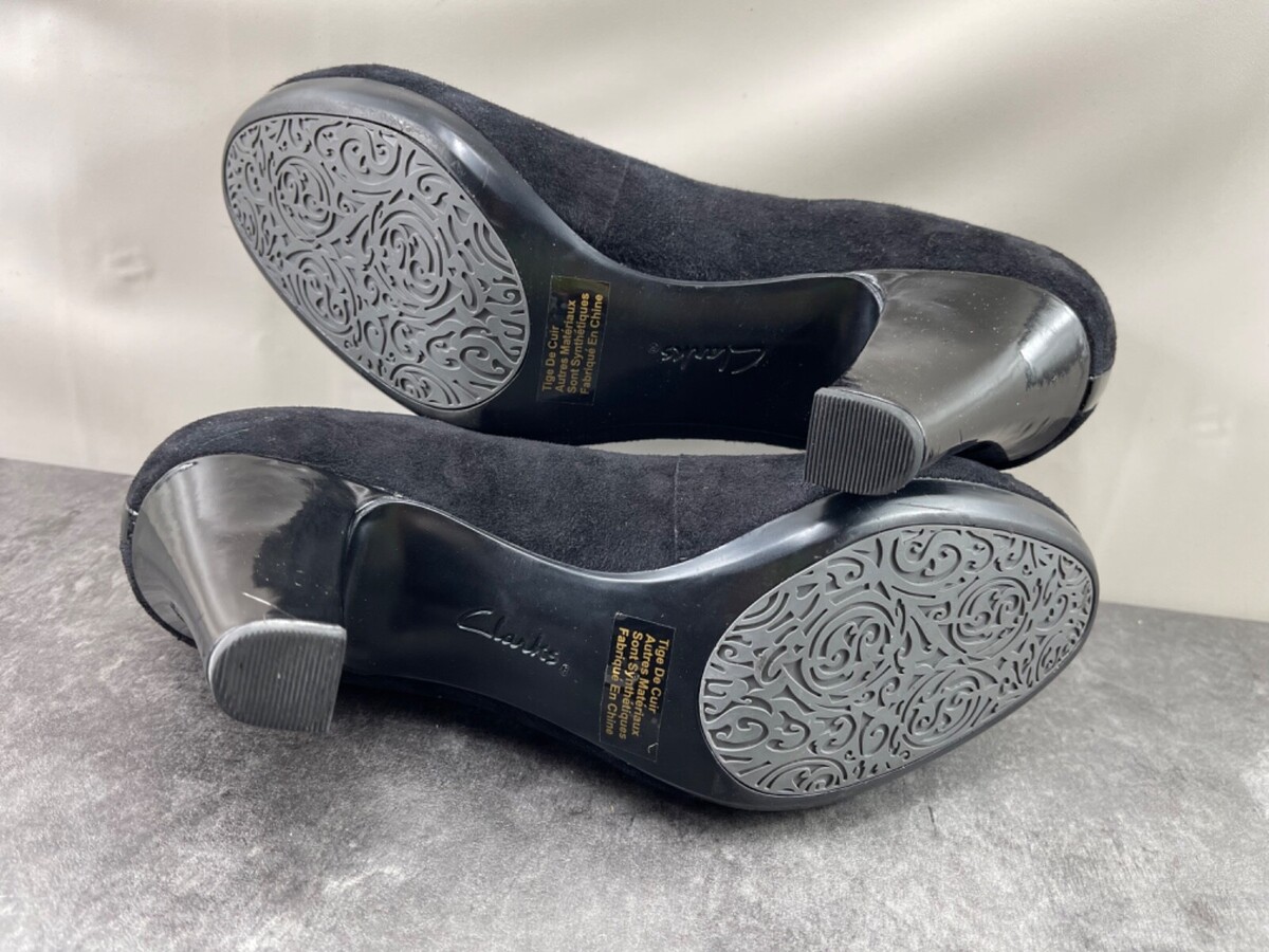 Clarks Heels Women 10 M Society Bristol Shoes Black Suede Leather Slip On Pumps