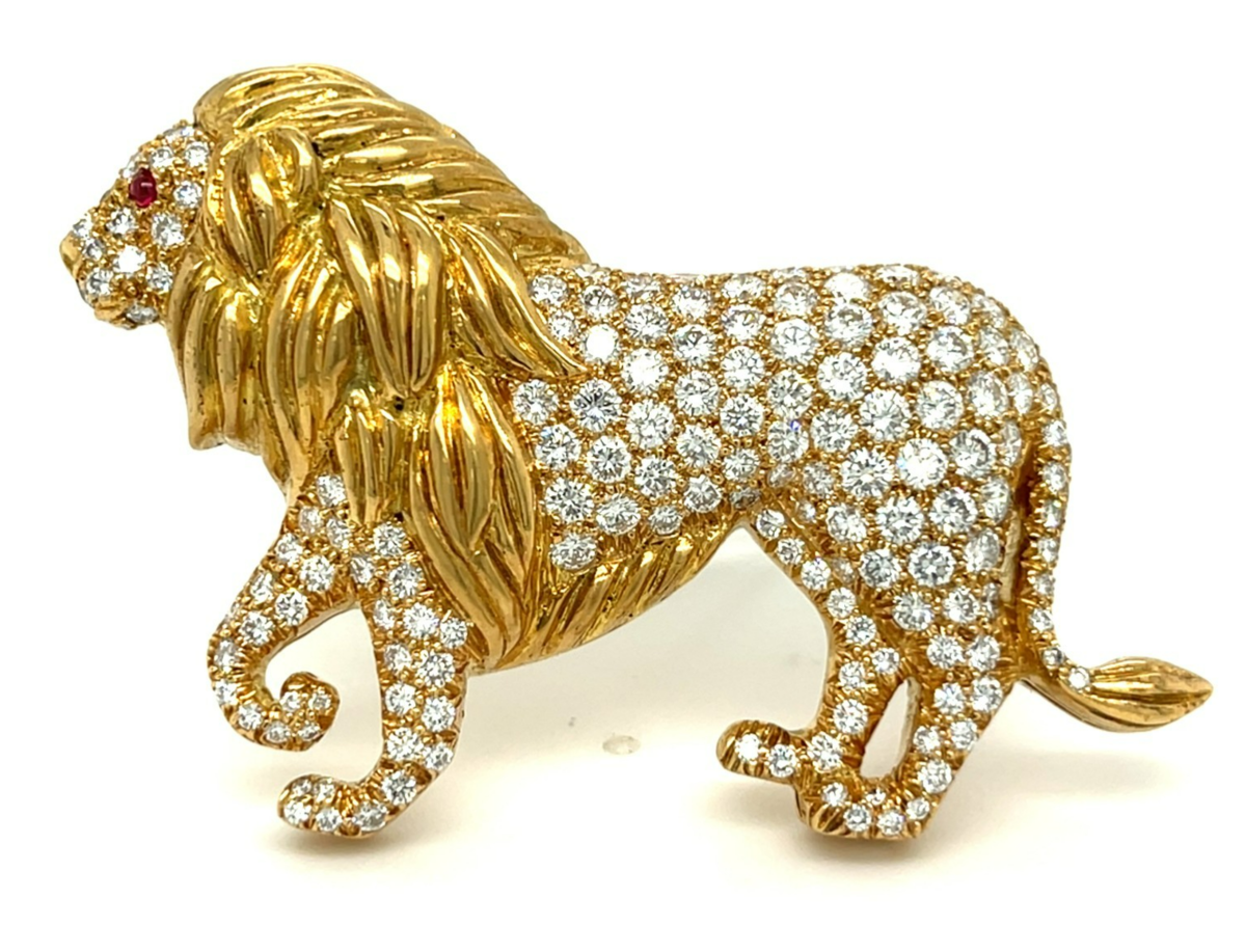 Oscar Heyman 18k Yellow Gold 4.75 ct Lion Brooch Unique Gorgeous