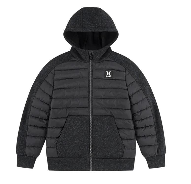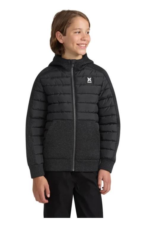 Hurley Boys Girls Jacket Black Hybrid Full-Zip Water Resistant Lined Heavyweight