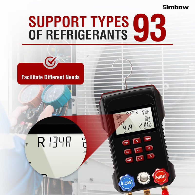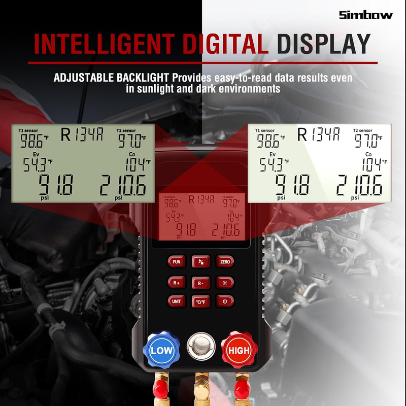 Digital Manifold Gauge, Digital AC Gauge Set SIMBOW AMF-300 HVAC Gauges with Str
