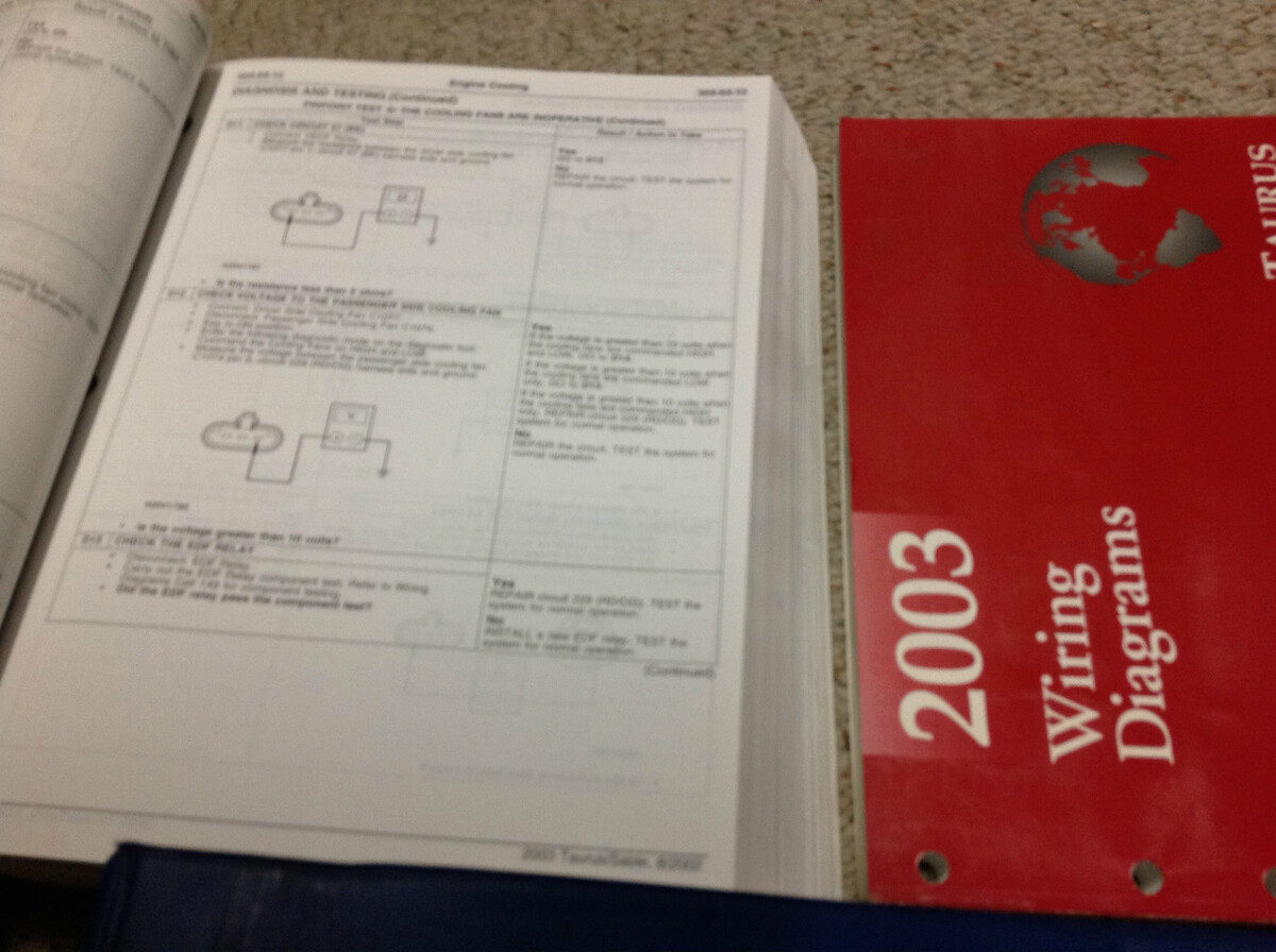 Manuale di servizio di fabbrica Ford Taurus/Mercury Sable di fabbrica del 2003, pagina dei bollettini e manuale degli schemi elettrici
