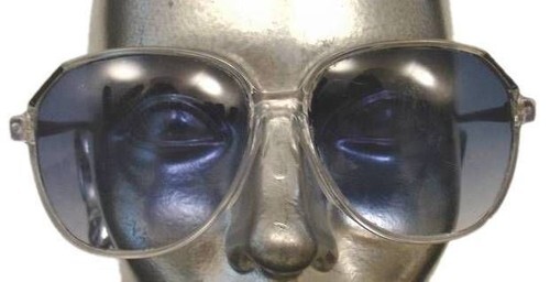 SUNGLASSES CLEAR W/PURPLE ARMS 1980?S