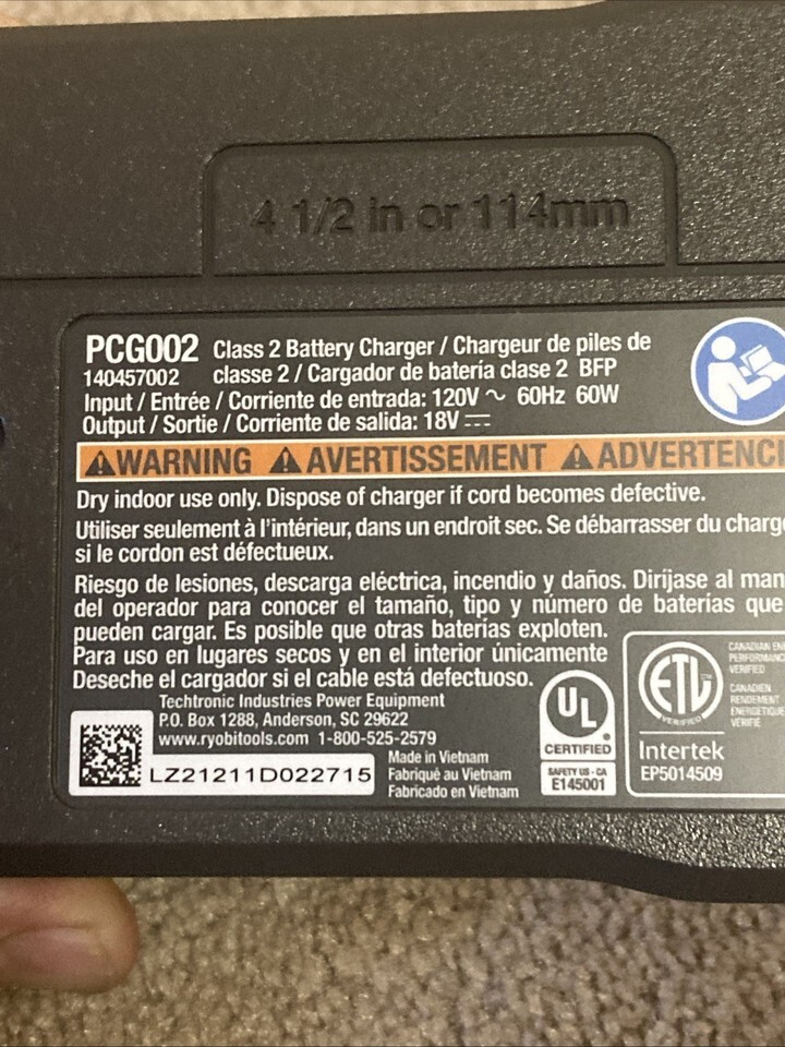 New Ryobi One + 18 Volt 18V PCG002 Lithium Ion Battery Charger Li-ion
