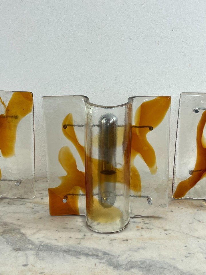 Set di 3 lampade da muro in vetro di Murano degli anni '70.