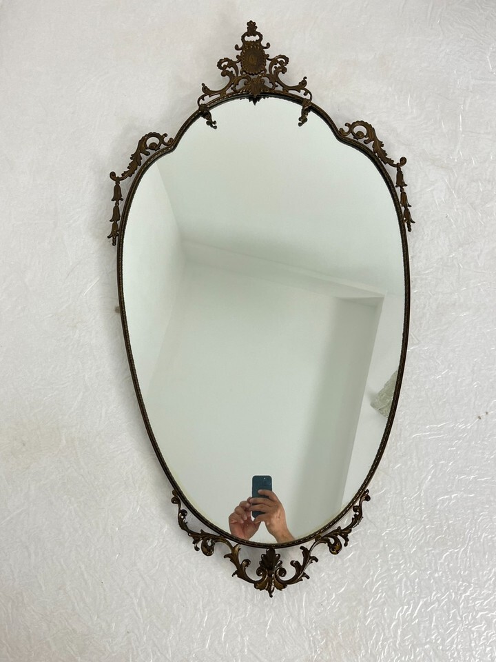 Delizioso specchio da muro Mid-century in ottone, anni '60, Made in Italy.