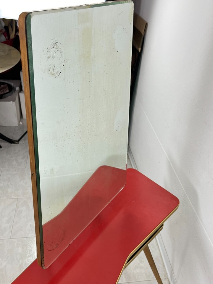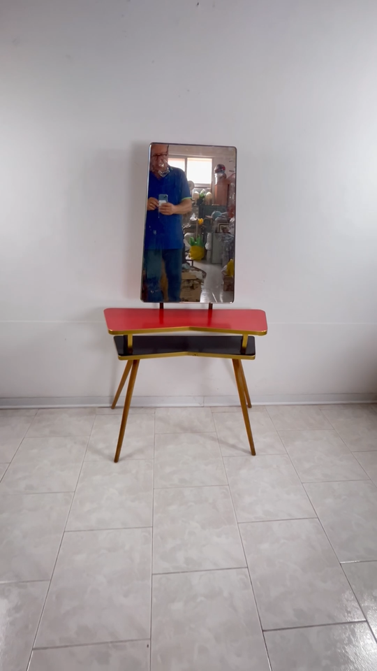 Piccola e affascinante consolle Mid-Century con specchio reclinabile, anni '50Alta cm 137, larga cm 80 e profonda cm 40.Integra ed in buone condizioni.Piccoli segni del tempo.Garantiamo spedizione veloce e assicurata con imballo adeguato e corriere di fiducia.