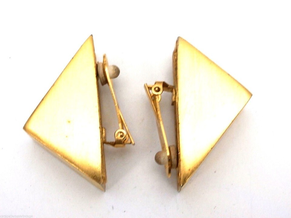 VTG Alexis Kirk Modernist Cubist Triangle Clip Earrings Matte Gold Signed