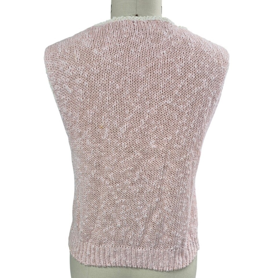 90s Y2k Jamie Scott Hand Knitted Cotton Sweater Vest Pink/Gray/Cream Sz S/M