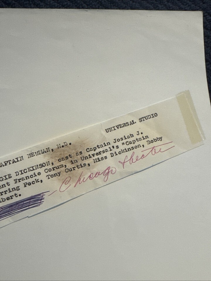 Angie Dickinson Original Autograph 8 X 10 Studio Photograph Captain Newman M.D.