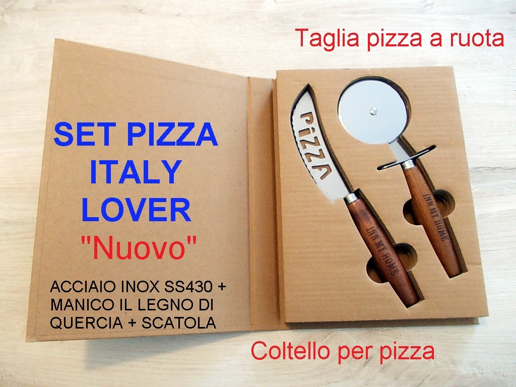 SET TAGLIA PIZZA ITALIA LOVER Inn My Home acciaio inox e legno in quercia NUOVO