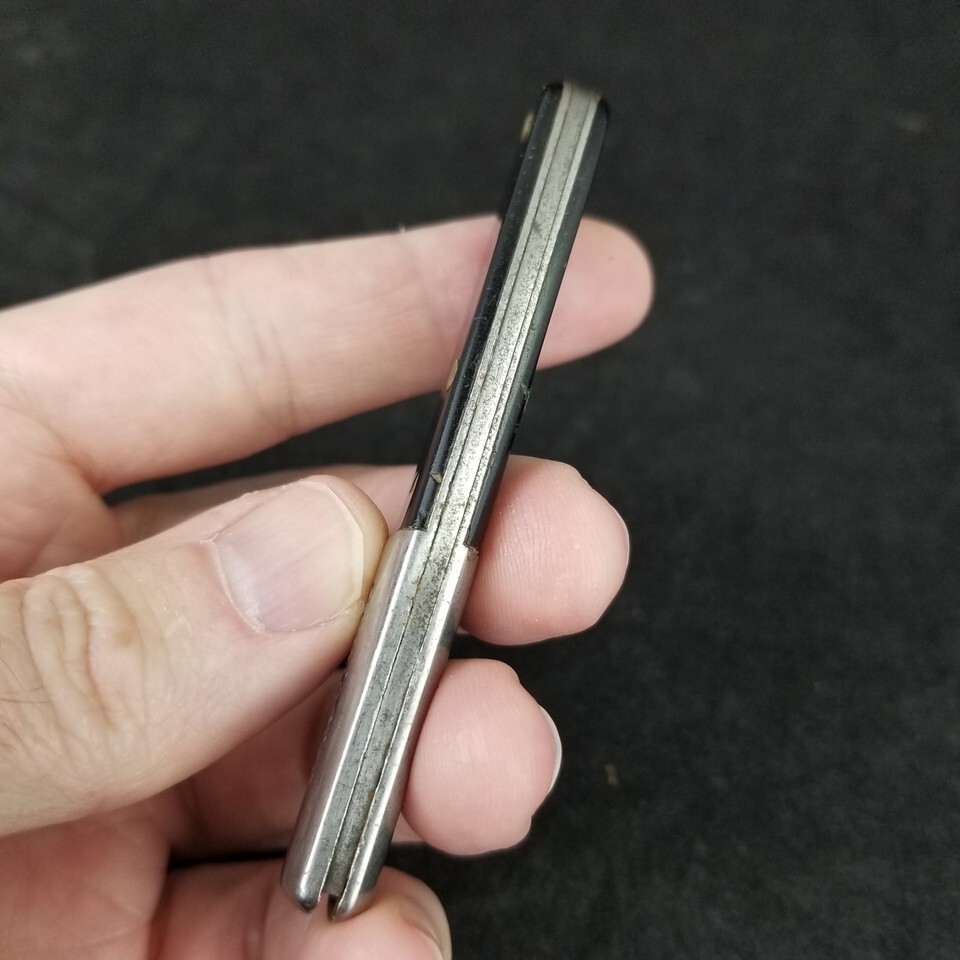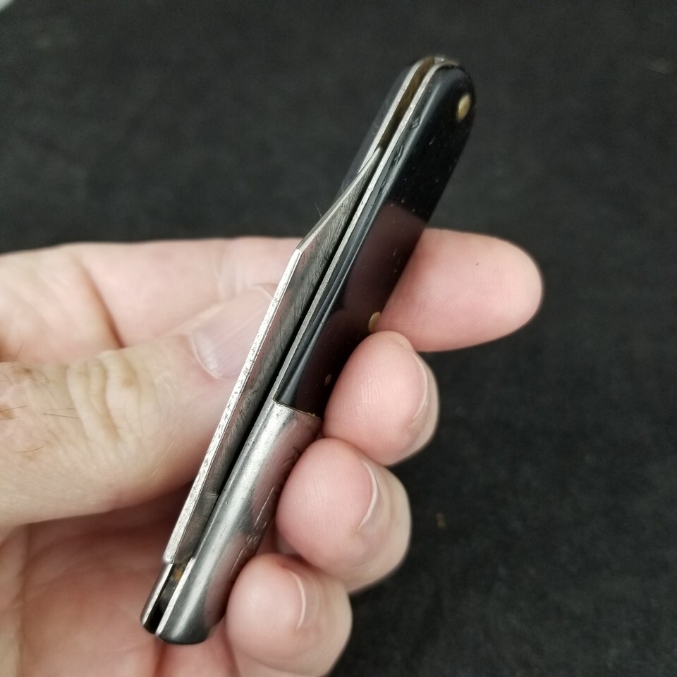 Some signs of age as seen in pictures. Bolsters have no cracks or chips but some scuffs. The blade opens and closes. No snap. The blade has been worn down as seen in pictures. SEE PICTURES.