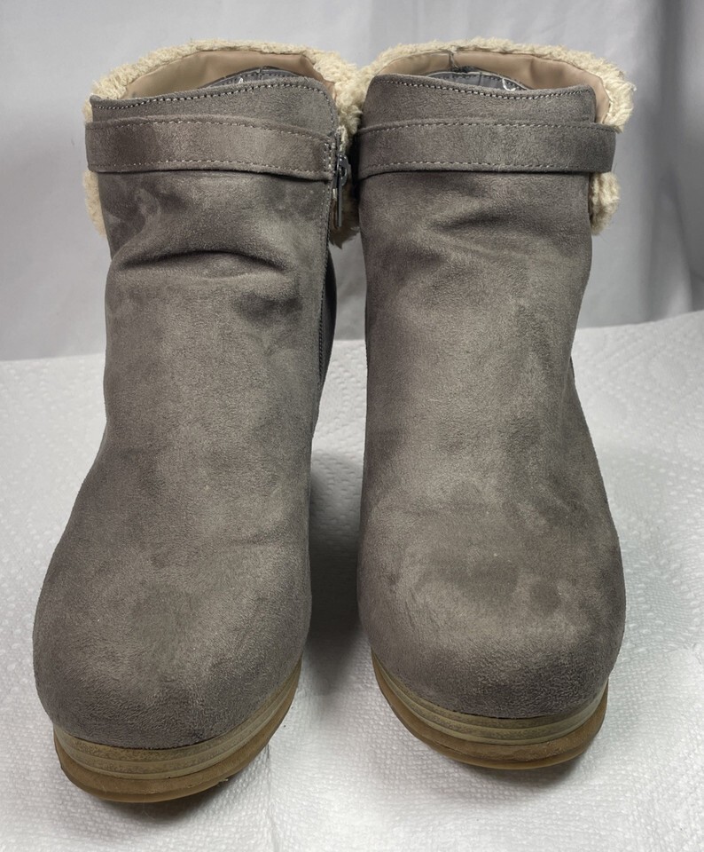Size 6M Tony Little Cheeks Womens Ankle Boots, Faux Suede, Side Zipper, Gray