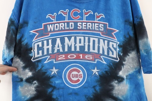 Retro Liquid Blue Mens XL Faded Acid Wash 2016 World Series Chicago Cubs T-Shirt