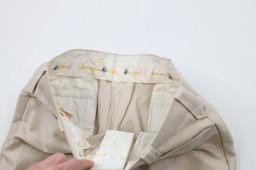 Vtg 70s Streetwear Mens 33x30 Distressed Knit Flared Bell Bottoms Pants Beige