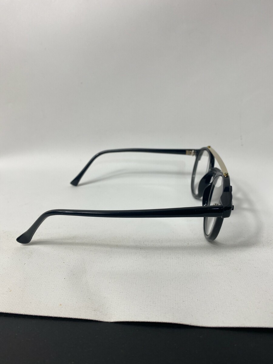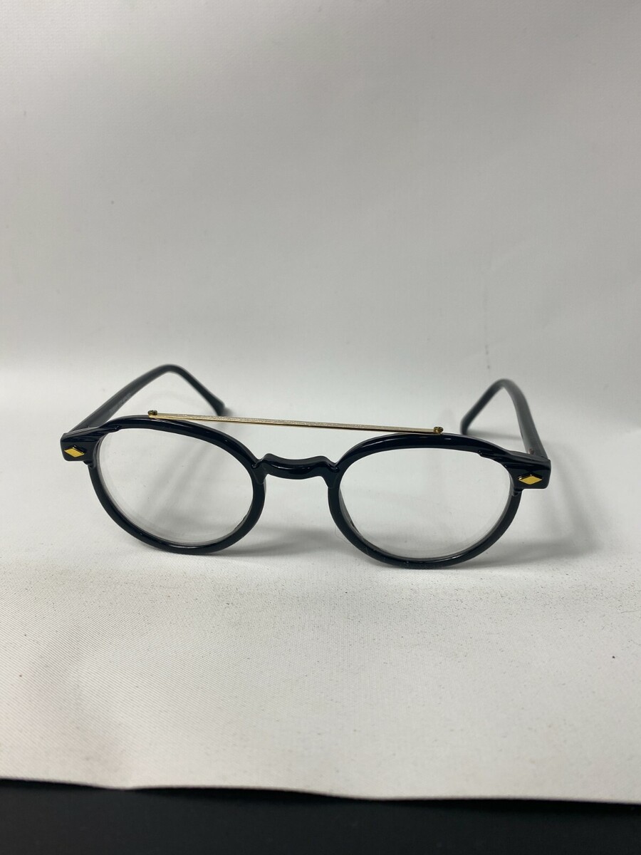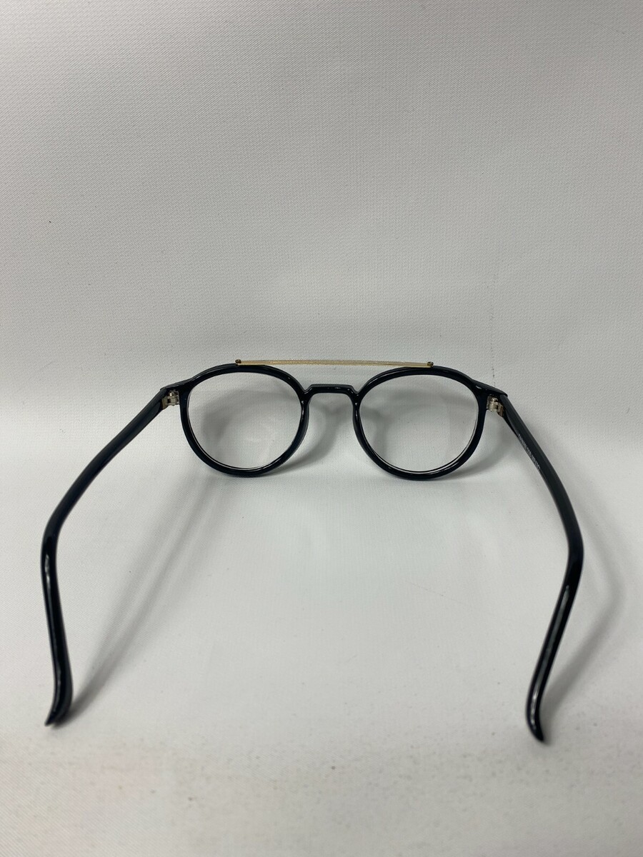 NOS Vintage 90s Streetwear Cross Bar Circle Eyeglasses Glasses Black Gold Non RX