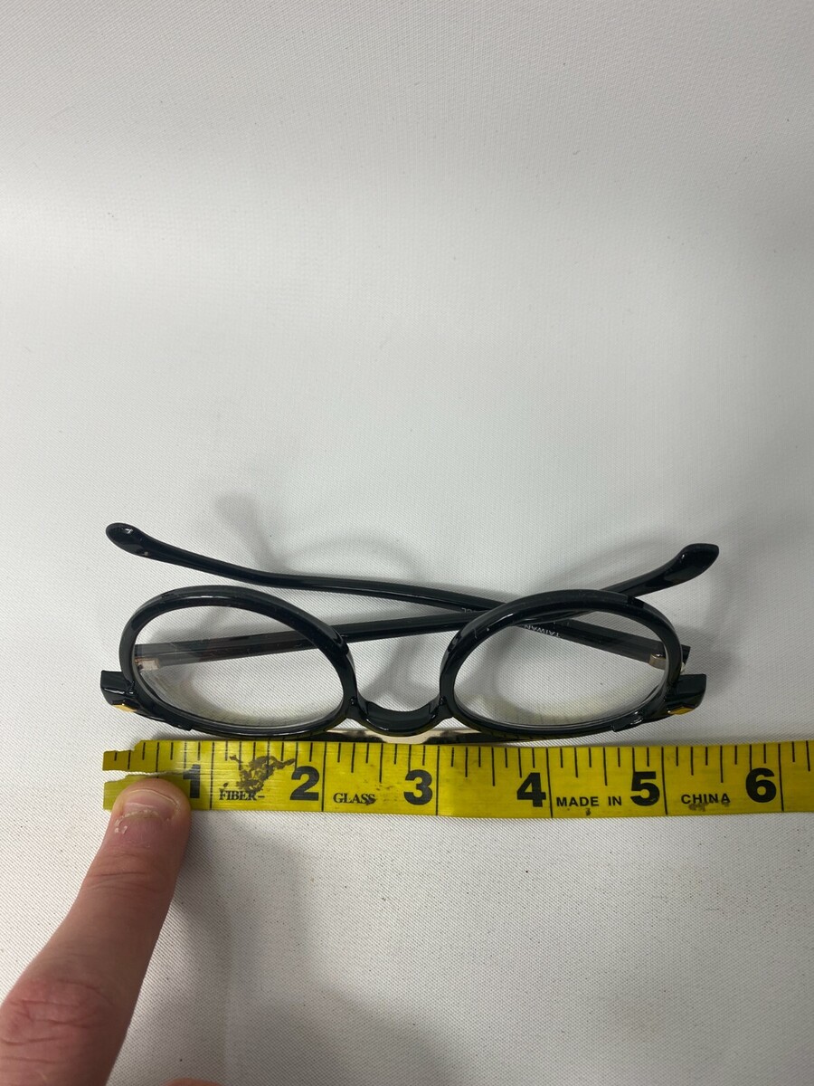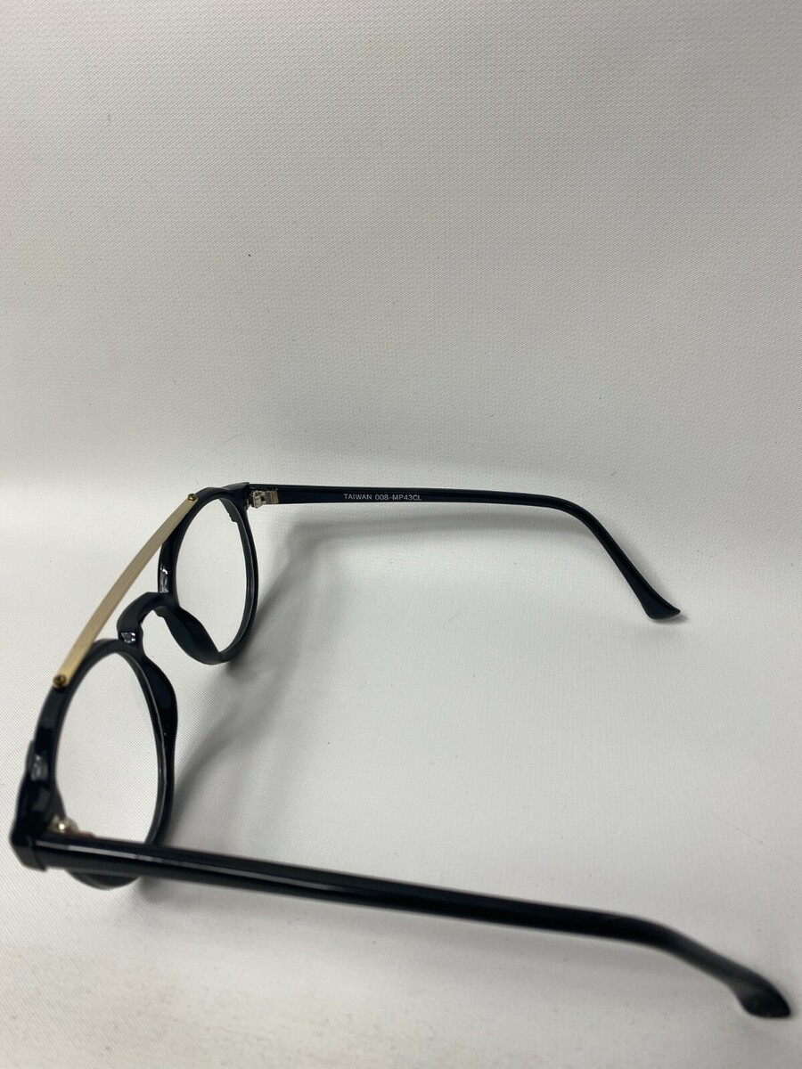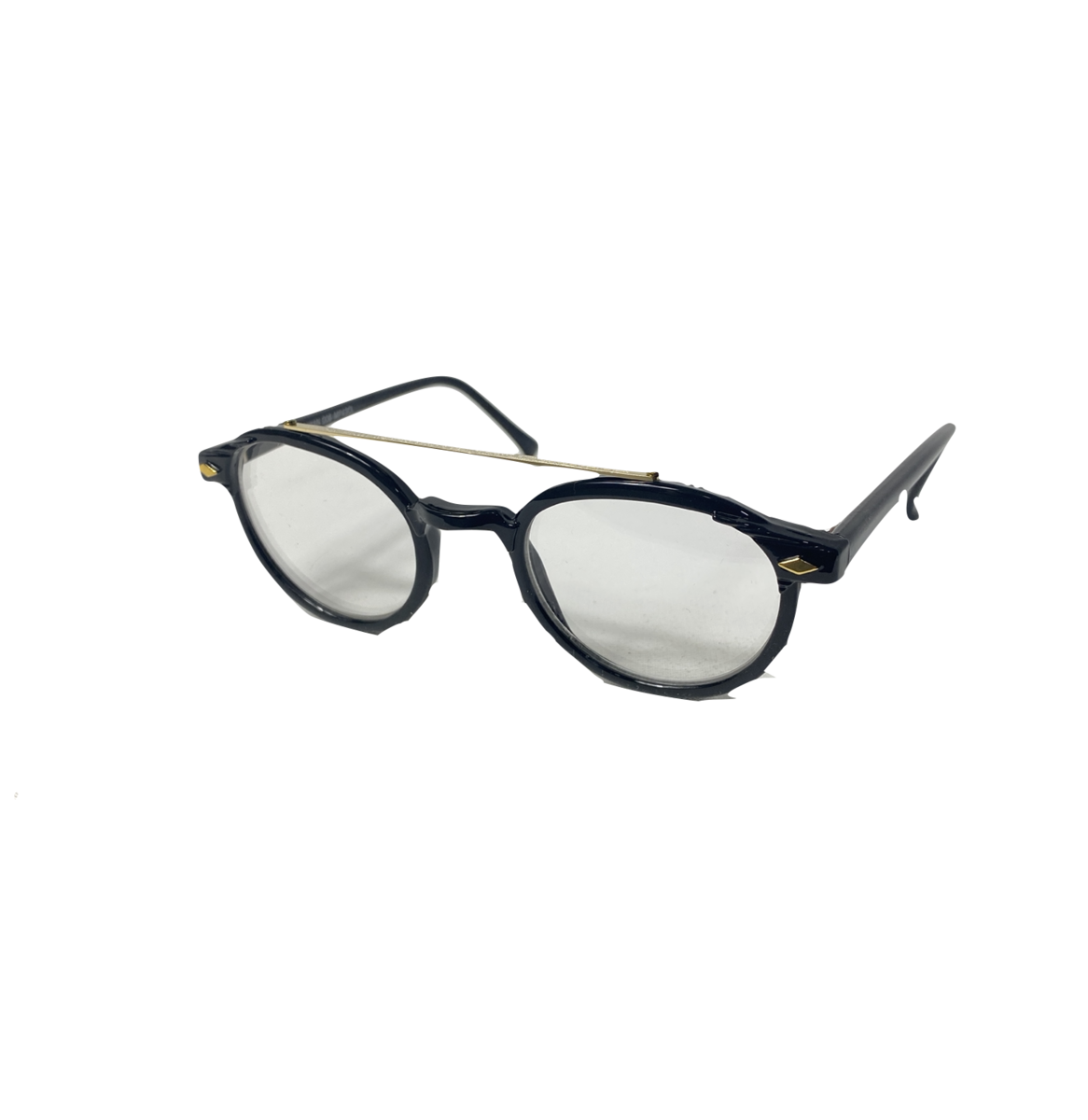 NOS Vintage 90s Streetwear Cross Bar Circle Eyeglasses Glasses Black Gold Non RX