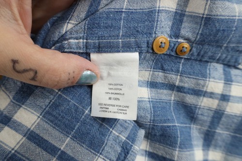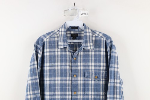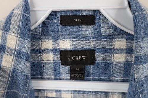 J Crew Mens Medium Slim Fit Cotton Weave Knit Collared Button Shirt Blue Plaid