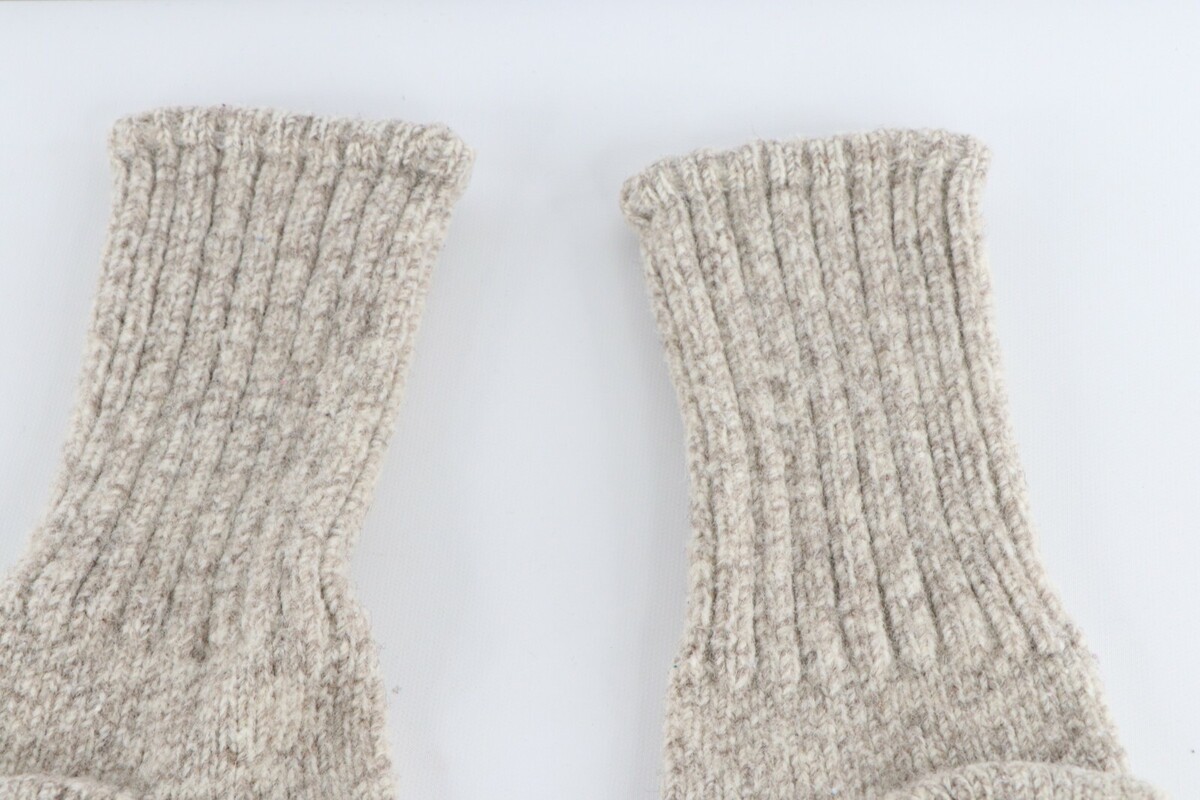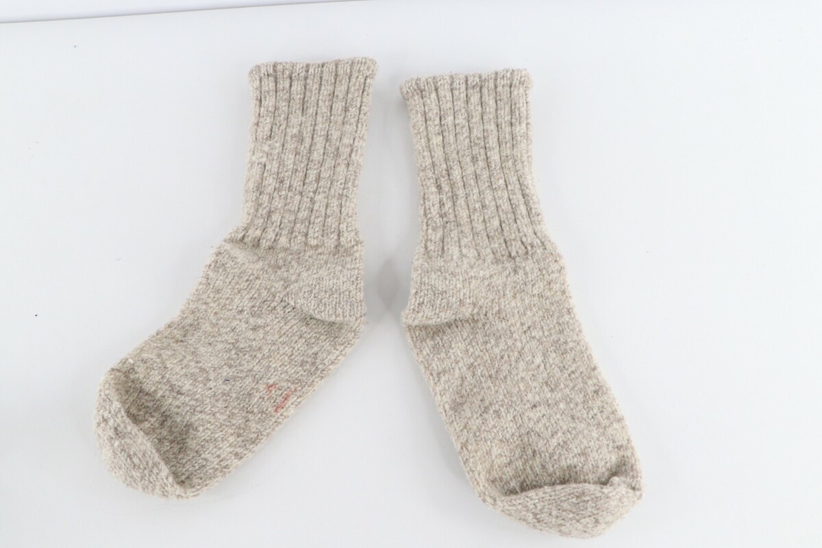 Vintage 70s Rockabilly Wool Knit Crew Socks Oatmeal Heather Brown Womens Large