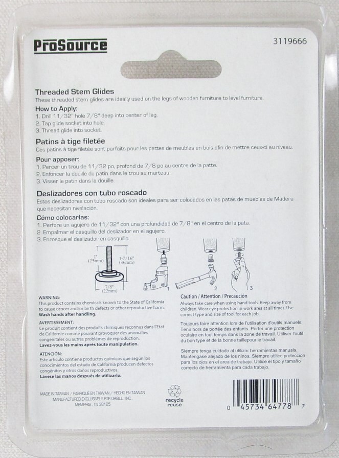 ProSource 7/8" Threaded Stem Glides, #3119666
