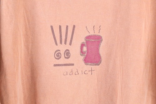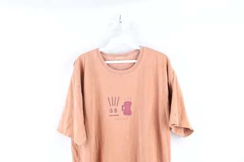 Vintage Mens Large Faded Stonewashed Spell Out Coffee Addict T-Shirt Cotton