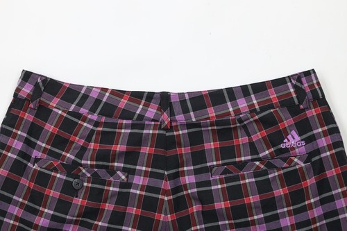 Vintage Y2K Adidas Golf Mens 34 Spell Out Flat Front Golfing Chino Shorts Plaid