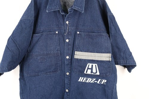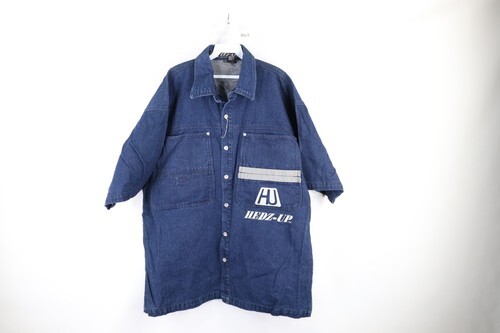 NOS Vintage 90s Streetwear Mens XL Baggy Fit Big Pocket Denim Button Shirt Blue