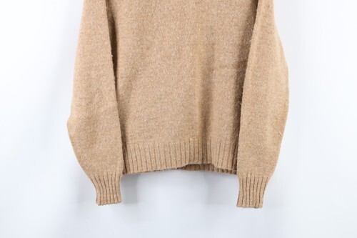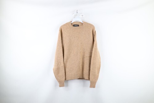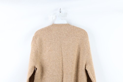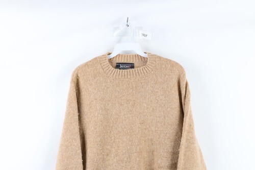Vtg 70s Streetwear Womens Large Blank Wool Blend Knit Crewneck Sweater Beige USA