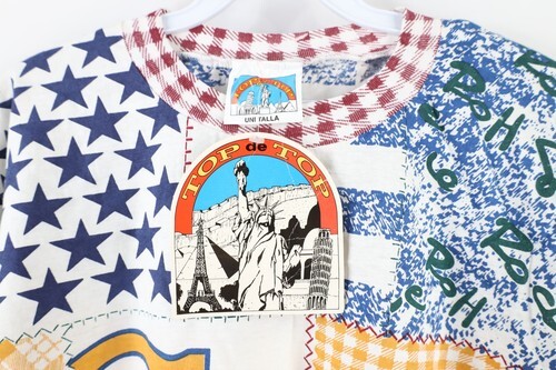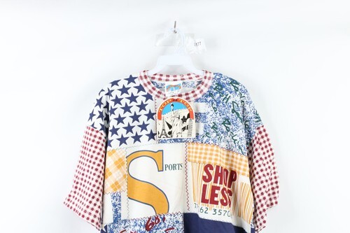 NOS Vtg 90s Streetwear Mens XL All Over Print Sports Earth Patchwork T-Shirt