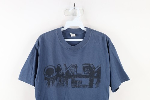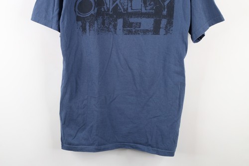 Vtg Oakley Mens Medium Faded Spell Out Stamp Short Sleeve T-Shirt Blue Cotton