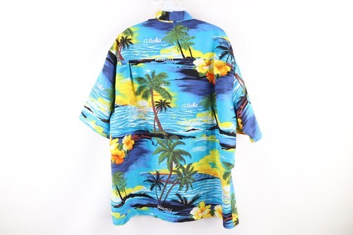 Vtg 90s Streetwear Mens 3XL Distressed Beach Flower Hawaiian Button Shirt USA