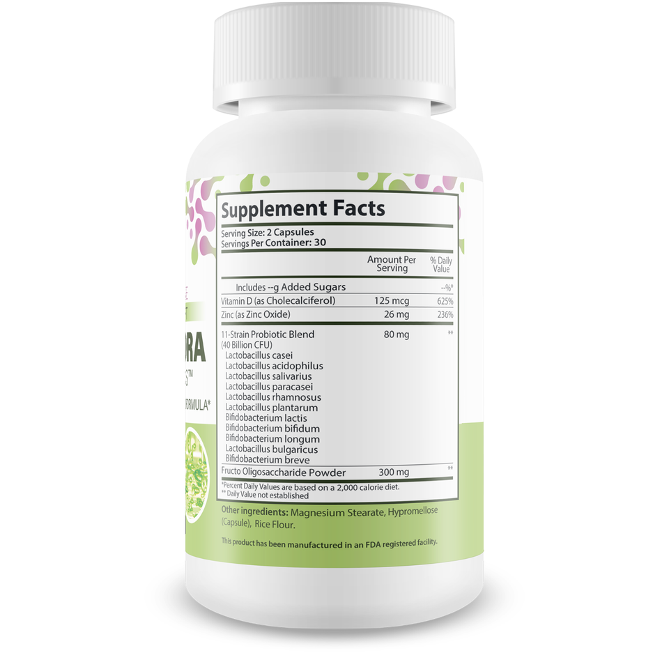 Prebiotic, Probiotic, Vitamin D3 (Cholecalciferol), Zinc |