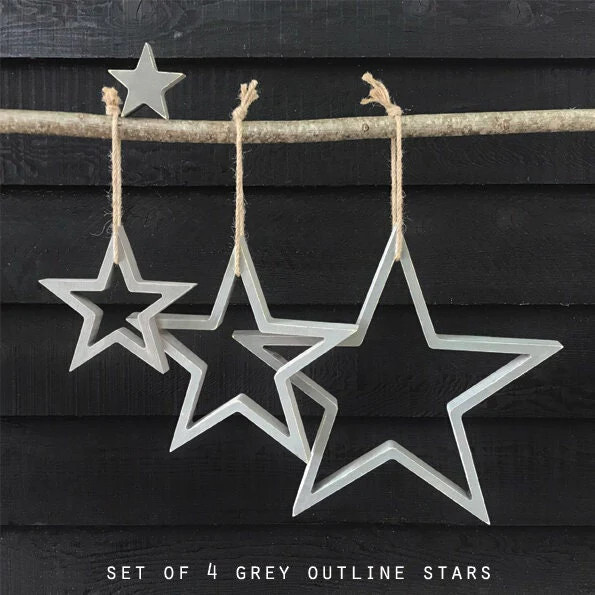East of India Set of 4 Grey Wooden Stars. and 50 similar items