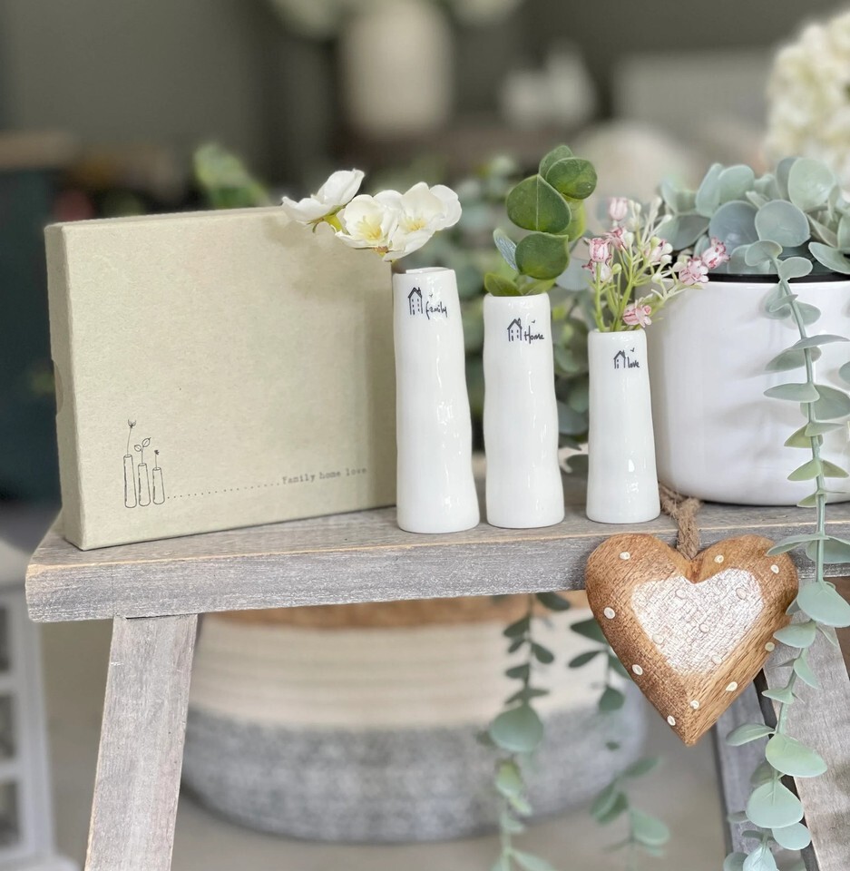 East Of India Set of 3 Porcelain Bud Vases - Home, Family, Love