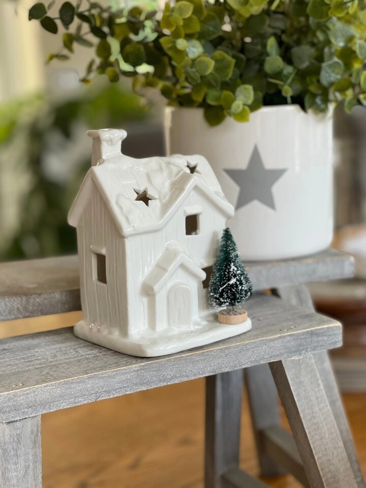Festive LED ceramic house decoration with cutout windows which allows a beautiful warm glow when switched on.