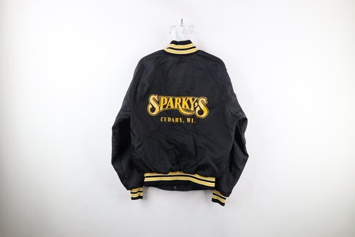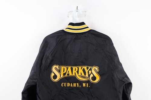 Vintage 80s Womens Medium Distressed Sparkys Wisconsin Lined Bomber Jacket USA