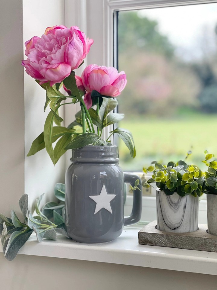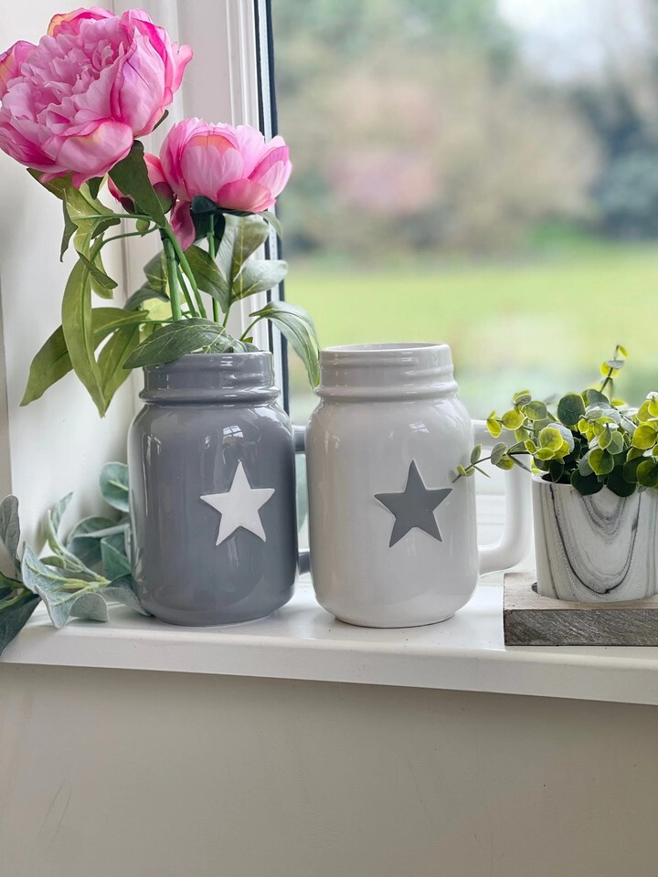 Ceramic Grey Jug with a decorative contrast star on the front. Dress with flowers or simply on its own