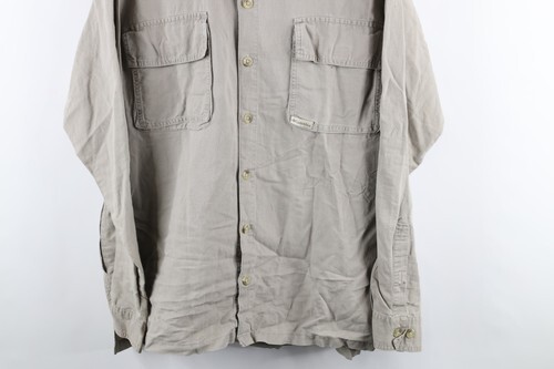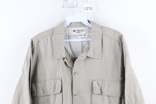 Vintage 90s Columbia Mens XL Distressed Spell Out Collared Button Shirt Gray