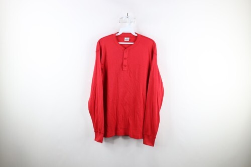 Vtg 70s Streetwear Mens L Faded Blank Ribbed Knit Long Sleeve Henley T-Shirt USA