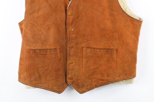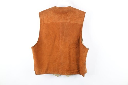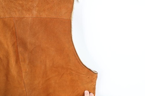 Vtg 60s 70s Streetwear Mens Medium Distressed Shearling Lined Leather Vest USA