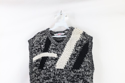Vintage 80s Mid Mod Womens 40 Chunky Hand Knit Geometric Sleeveless Sweater Vest