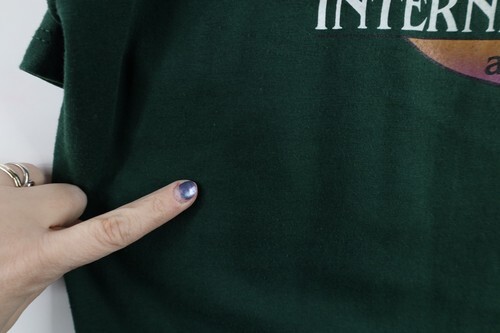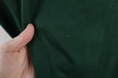 Dark spots front middle. Stain back bottom. Has pilling. Color faded. USA made