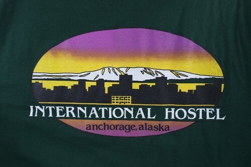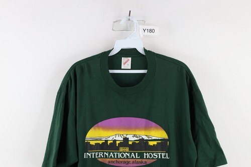 Vintage 90s Streetwear Mens XL Spell Out International Hostel Alaska T-Shirt USA