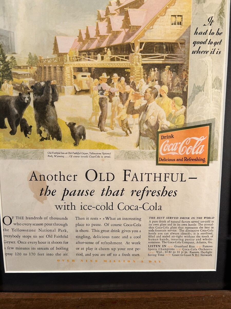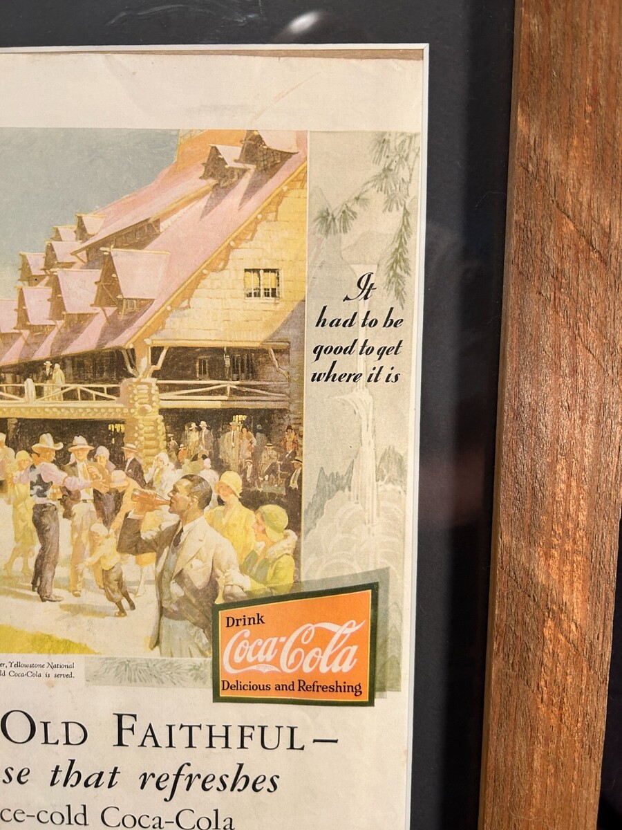 Original 1931 Coca-Cola Yellowstone Old Faithful Ad Framed Vintage Soda Print