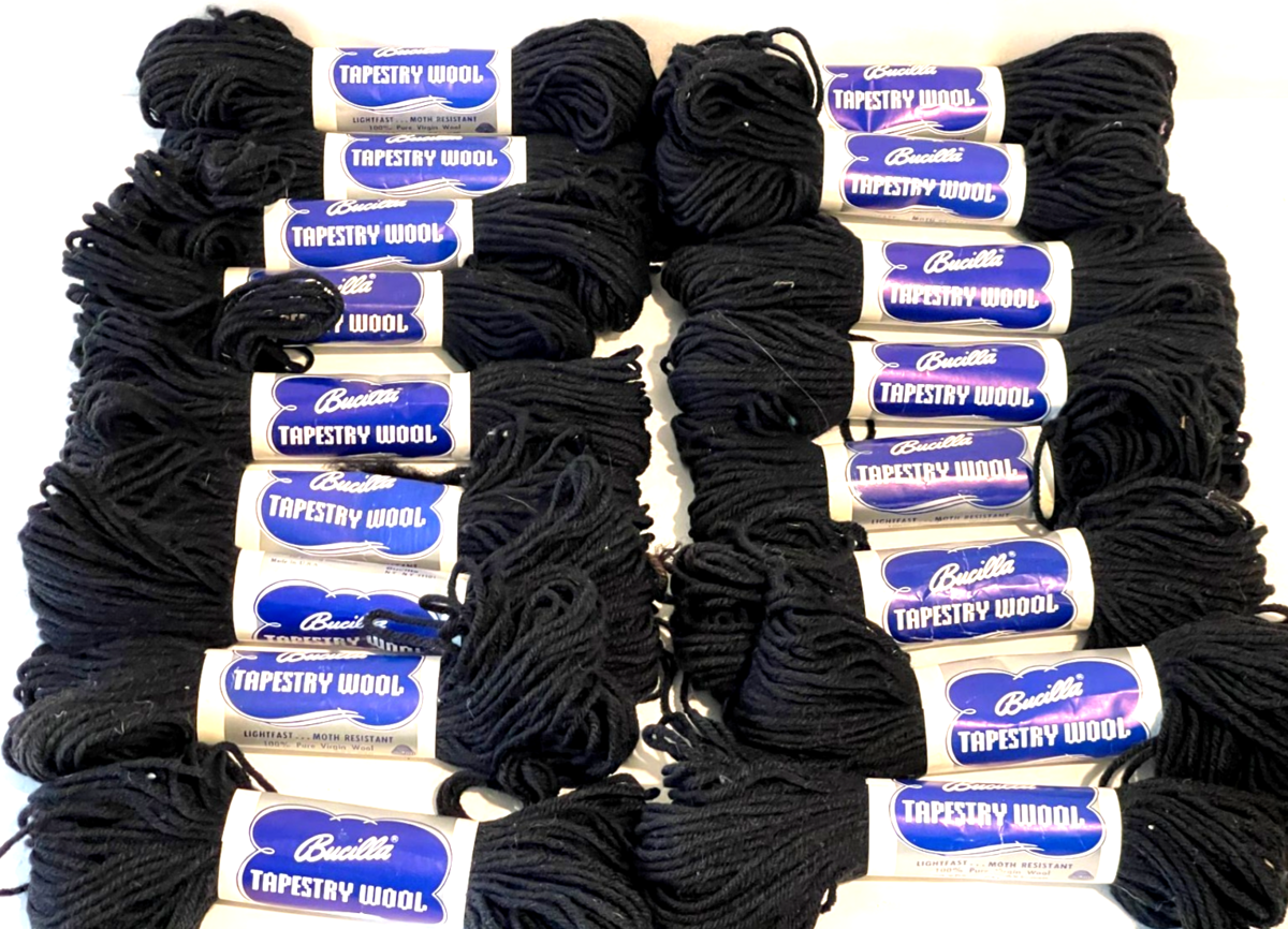Lot of 17 Bucilla Tapestry Pure Virgin 100% Wool Yarn Black 199 Lot 25432-101A