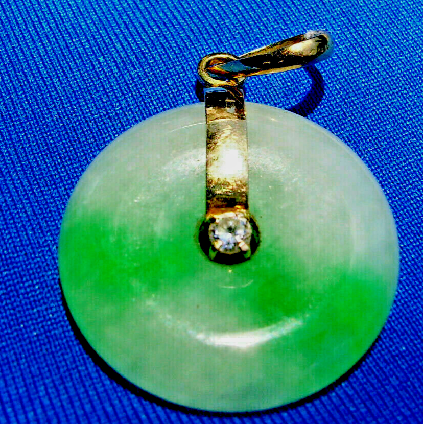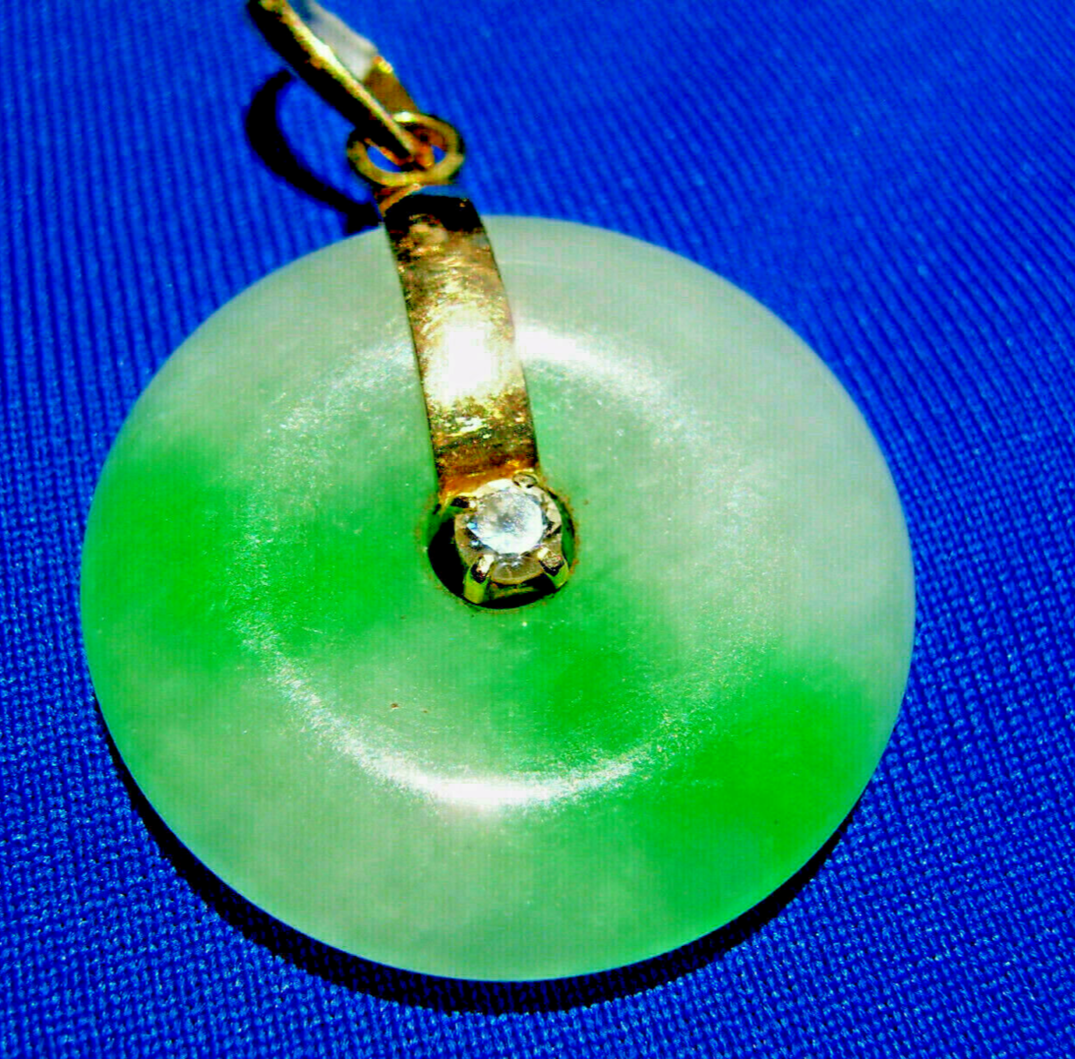 Earth mined Jadeite Jade Diamond Vintage Deco Vivid Green White Disc Pendant 18k