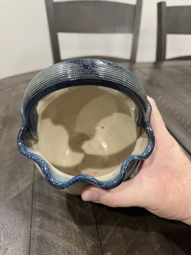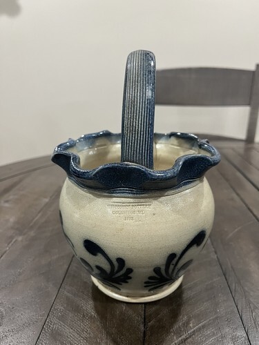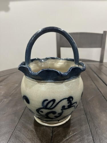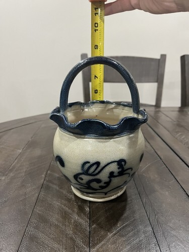 BLUE BUNNY Handmade Salt Stoneware Basket WISCONSIN POTTERY Columbus WI