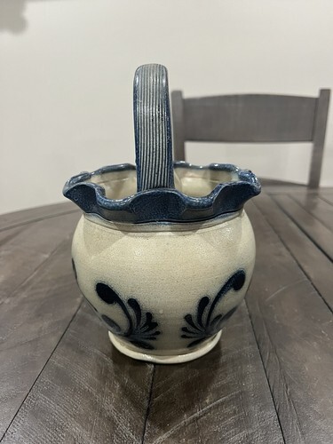 This art pottery basket was made using traditional pottery techniques and is completely handmade. It is a high-quality piece that is both decorative and functional. With its durability and unique style, this salt stoneware basket is sure to be a conversation starter.
