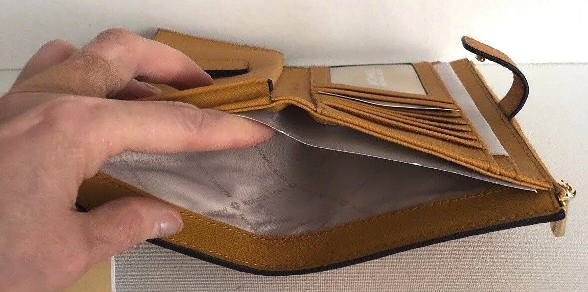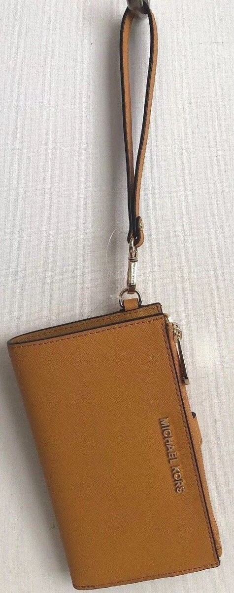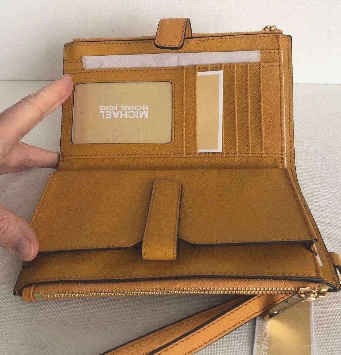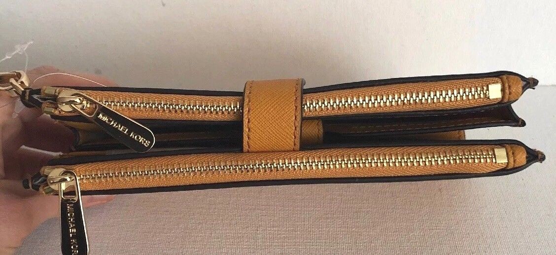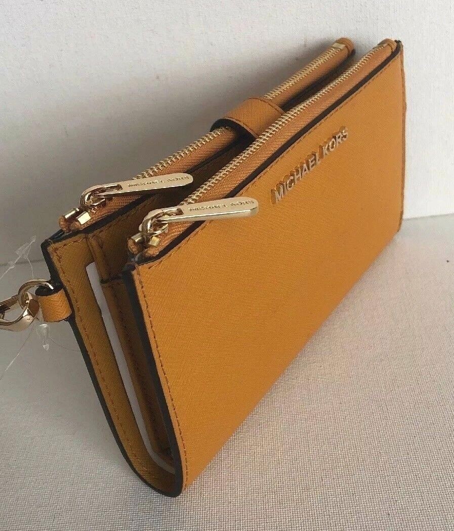 New Michael Kors Jet Set Travel Double zip wristlet Leather wallet Marigold