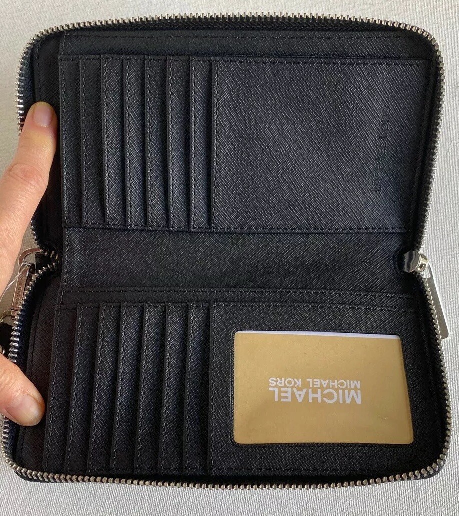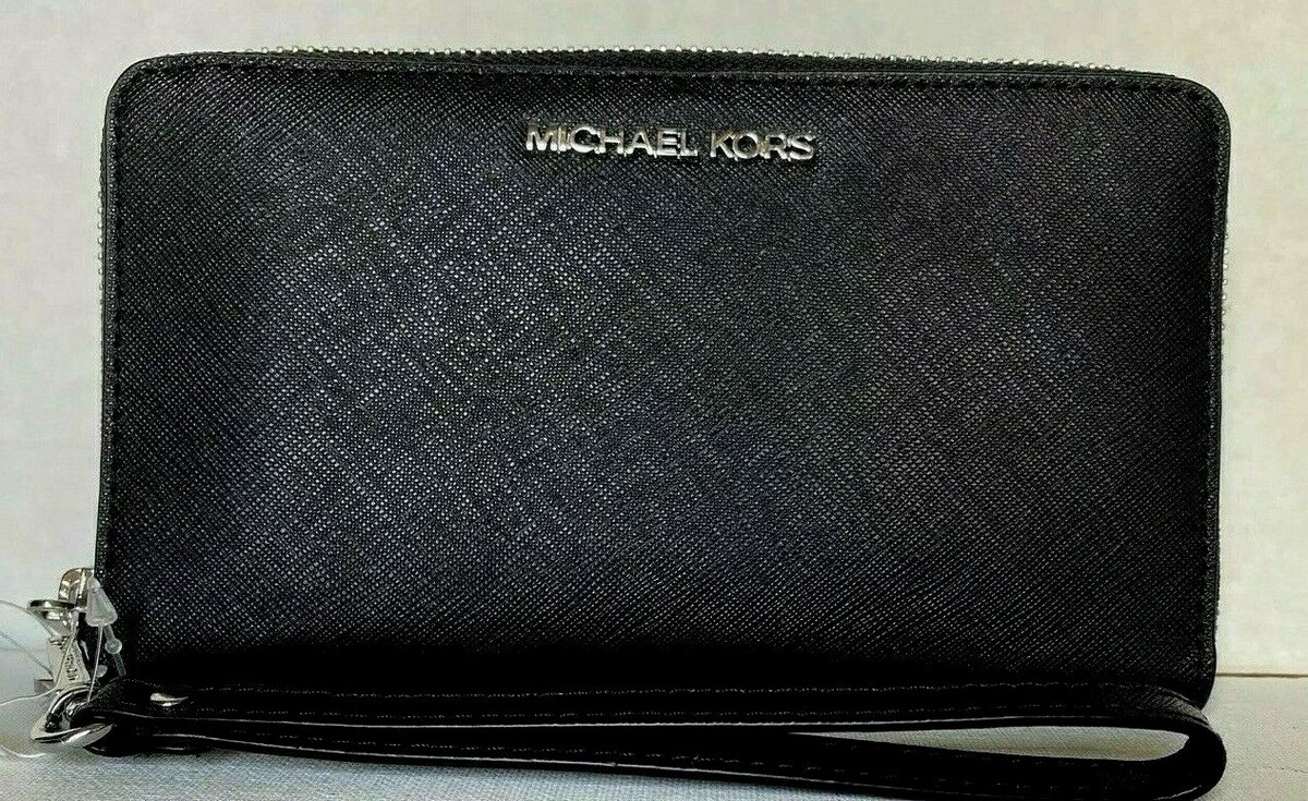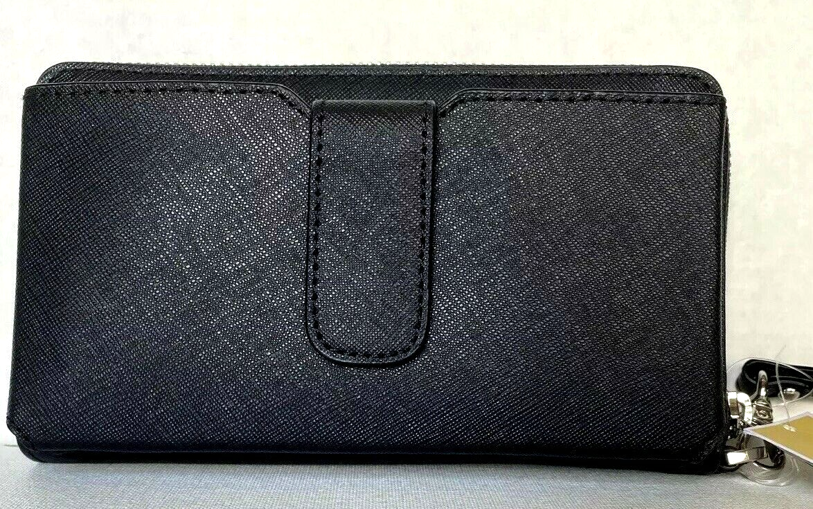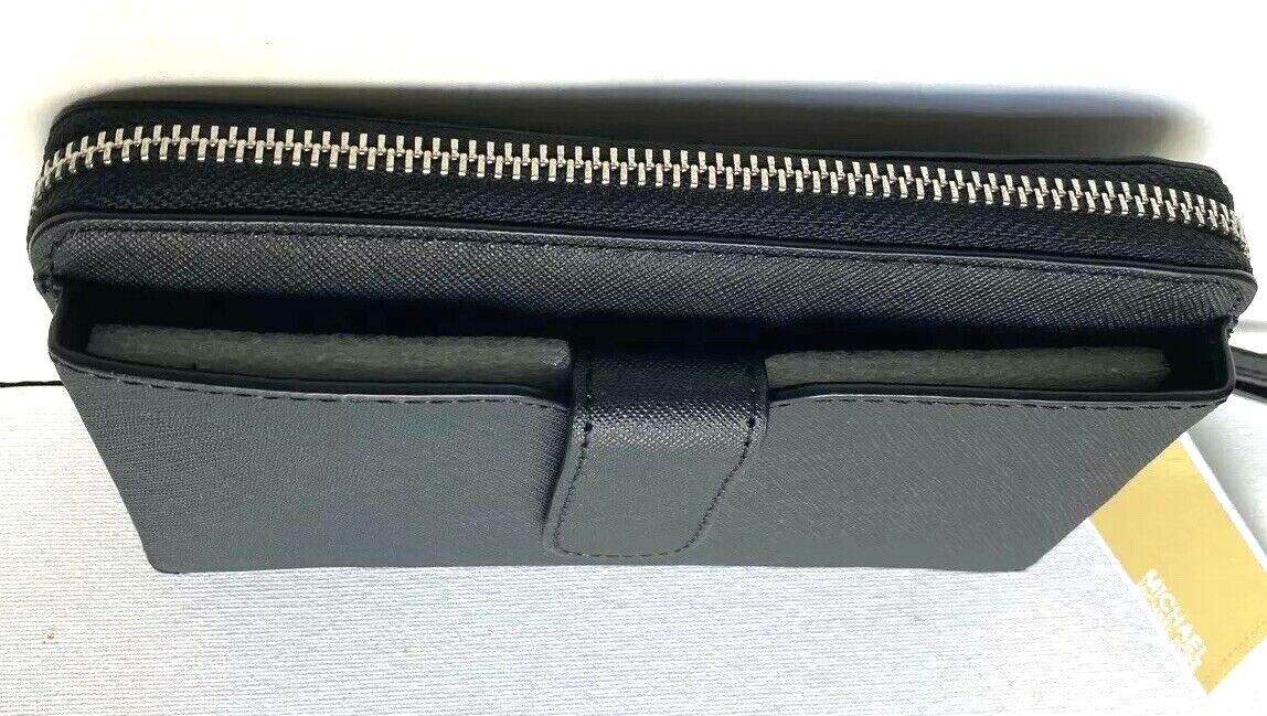 New Michael Kors Jet Set Travel Medium Zip Around Phone Holder Wallet Black