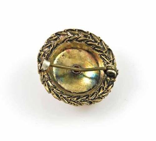 Antique Brooch Carved Coral Celluloid Round In Brass Setting